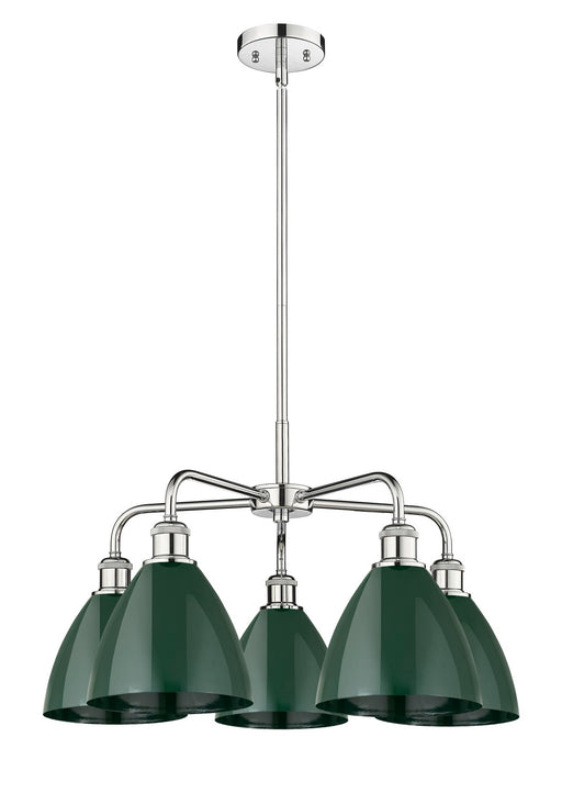 Plymouth - 5 Light - 26 inch - Polished Chrome - Green Shade - ChandelierDetails:Product Type: Metal ShadeFinish: Polished ChromeShade: Green Plymo...