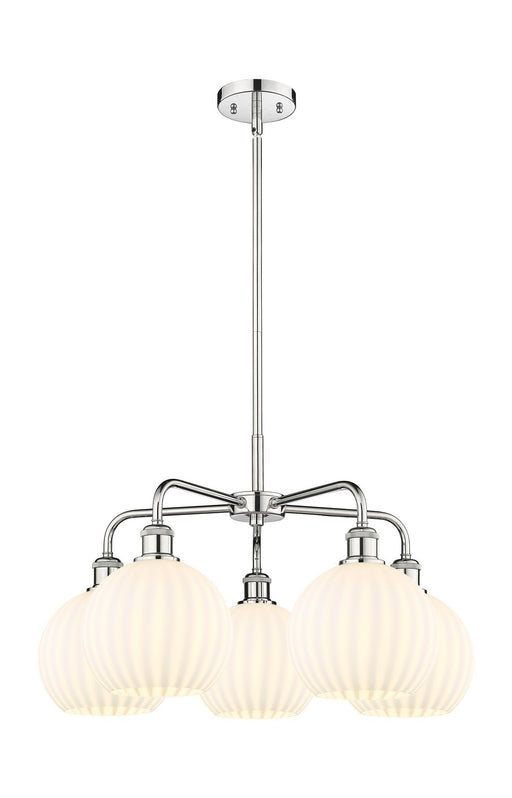 Ellery - 5 Light - 23 inch - Polished Chrome - White Shade - ChandelierDetails:Product Type: Glass DownFinish: Polished ChromeShade: White ElleryRo...