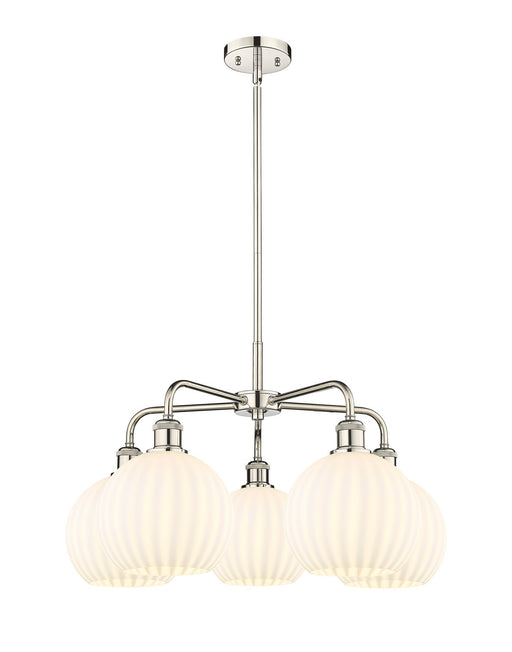 Ellery - 5 Light - 23 inch - Polished Nickel - White Shade - ChandelierDetails:Product Type: Glass DownFinish: Polished NickelShade: White ElleryRo...