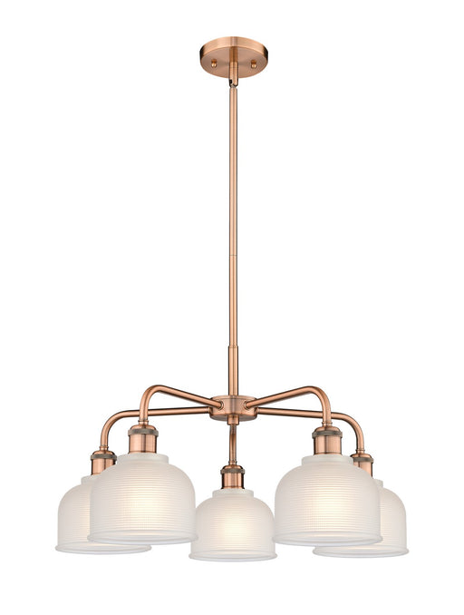 Dayton - 5 Light - 24 inch - Antique Copper - White Shade - ChandelierDetails:Product Type: Glass DownFinish: Antique CopperShade: White DaytonRoom...