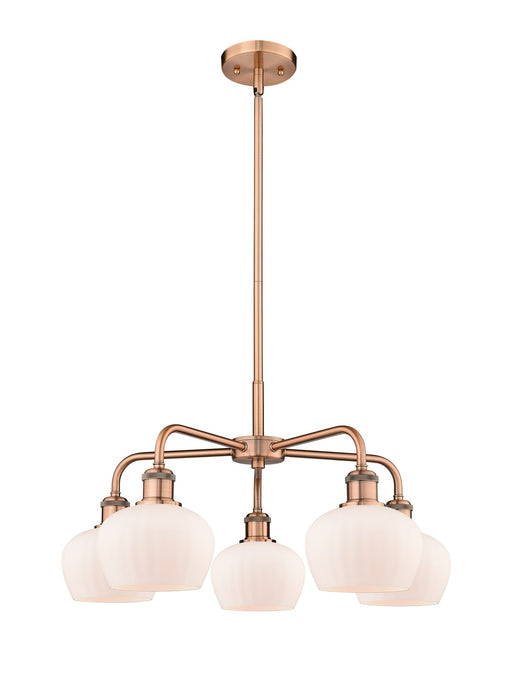 Fenton - 5 Light - 25 inch - Antique Copper - Matte White Shade - ChandelierDetails:Product Type: Glass DownFinish: Antique CopperShade: Matte Whit...