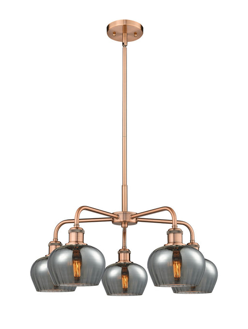 Fenton - 5 Light - 25 inch - Antique Copper - Plated Smoke Shade - ChandelierDetails:Product Type: Glass DownFinish: Antique CopperShade: Plated Sm...
