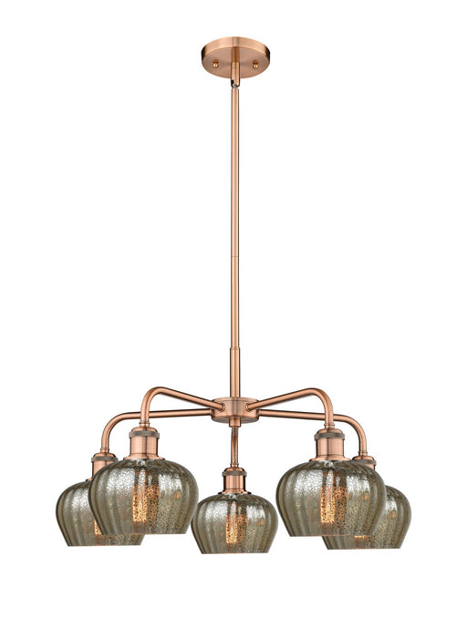 Fenton - 5 Light - 25 inch - Antique Copper - Mercury Shade - ChandelierDetails:Product Type: Glass DownFinish: Antique CopperShade: Mercury Fenton...