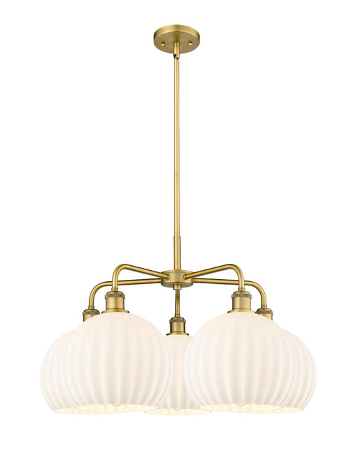 Dayton - 5 Light - 24 inch - Brushed Brass - White Shade - ChandelierDetails:Product Type: Glass DownFinish: Brushed BrassShade: White DaytonRooms:...