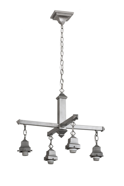 This stunning Bungalow styled ceiling fixture projects soft ambient light through four shapely Alabaster White art glass diffusers, which are compl...