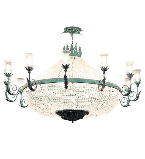 Exquisite grace and delicate beauty are blended to create the distinctive, elegant Crista Chandelier. A total of 30 Hurricane Clear Glass Shades re...