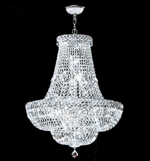 In the tradition of European Ballrooms and mansions of days gone by, these "Grand" Chandeliers are lavishly trimmed with beautiful Crystal pendalog...