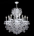 The natural beauty of Crystal Arms and Scrolls are combined with pendalogues on these Chandeliers. The perfect interpretation of a favorite traditional style. Provided with both Silver & White candle sleeves.