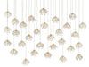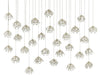 The Crystal Bud 30-Light Multi-Drop Pendant dangles flowers made of delicate faceted crystals from its canopy to make the shades effervescent and graceful. The canopy of this piece is luminous in a painted silver finish. This fixture is among Currey & Company's multi-drop pendant collection, which includes multiple configurations.
