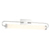 Soft-diffused lighting is presented via a frosted white roll of glass finished with a stepped cap on each end and suspended between embracing racetrack arms. The comfortable illumination whether installed horizontally or vertically will compliment lifestyle settings from contemporary to traditional