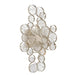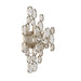 Intricate champagne silver or antique gold frames delicately hand strung glass wafers. The pressed glass, each one a distinguished piece of craftsmanship, float beautifully like clouds.