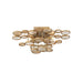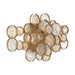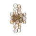 Intricate champagne silver or antique gold frames delicately hand strung glass wafers. The pressed glass, each one a distinguished piece of craftsmanship, float beautifully like clouds.