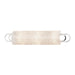 The handmade glass that artfully distorts the light in our Buckley family is unique. Clean, ribbed glass faces inward from the ovalesque piece. Broken chips of glass have been fused onto the back, causing a refractory effect. A double band of thick square metal mounts the fixture.