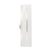 Inspired by the modern skyscraper design, the architectural lines of the Soma collection are truly suitable for urban and contemporary environments such as an industrial loft. The exposed bulbs make a beautiful accompaniment to the distinctive contrasting finishes of this rectilinear piece. This contemporary two light vanity sconce comes in a textured white finish with brushed nickel accents. It fits perfectly in a minimalistic modern bathroom, hallway or living room.