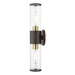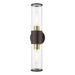 Add a dash of character and radiance to your home with this wall sconce. This double-light fixture from the Banca Collection features a bronze finish with clear hand blown glass intentionally exposing the bulb inside for a trendy look. The clean lines of the back plate complement the cylindrical glass shade adorned with detailed trim on top creating an industrial, sleek, urban look that works well in most of today`s interiors. This fixture adds upscale charm and contemporary aesthetics to your home.
