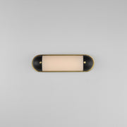 A convex curved glass is encapsulated at both ends to create an overall oval form. Available in a bold two-tone Black and Aged Brass finish or Polished Chrome, these wall sconces add sophistication to hallways and above bath vanities. The integrated LED technology within the glass features an easily accessible, yet discreet color selectable switch for 5 color temperatures from a warm 2700k to neutrals 3000-3500-4000K and a daylight white 5000k.