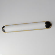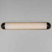 A convex curved glass is encapsulated at both ends to create an overall oval form. Available in a bold two-tone Black and Aged Brass finish or Polished Chrome, these wall sconces add sophistication to hallways and above bath vanities. The integrated LED technology within the glass features an easily accessible, yet discreet color selectable switch for 5 color temperatures from a warm 2700k to neutrals 3000-3500-4000K and a daylight white 5000k.