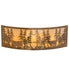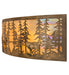 A stunning nature inspired stand of Tall Pines is depicted while the super moon shines brightly over the trees on this elongated curvilinear wall sconce. Beautiful ambient light is diffused through Beige Iridescent art glass, which is complemented with Antique Copper finished accents and hardware. The fixture, which is ideal for hotel corridors and large spaces, is handcrafted in our 180,000 square foot manufacturing facility in Yorkville, New York at the foothills of the breathtaking Adirondack Mountains. Custom styles, designs and sizes are offered. Energy efficient lamping options are available. The sconce is UL and cUL listed for damp and dry locations.