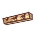 Running Horses are featured galloping along the prairie while the sun rises in the background in this dramatic lighting design. Beautiful ambient lighting is projected through a Silver Mica lens which is enhanced in a stunning Rust finish. The fixture is perfect as a vanity light in a bath or as a wall sconce in a corridor. The wall luminaire is Made to Order in our 180,000 square foot manufacturing facility in Yorkville, New York, located at the foothills of the Adirondack Mountains. Additional wildlife and custom designs are available, as well as customized diffuser colors, finishes and fixture sizes. The fixture is UL and cUL listed.
