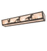 Running Horses are featured galloping along the prairie while the sun rises in the background in this dramatic lighting design. Beautiful ambient lighting is projected through a Silver Mica lens which is enhanced with a stunning Oil Rubbed Bronze finish. Perfect as a vanity light in a bath or as a wall sconce in hallways, entryways, and other residential, hospitality, and commercial spaces throughout the US, including Lexington, Kentucky, Dodge City, Kansas, and Cody, Wyoming. The Running Horses Vanity Light is featured in our American-made, American-designed, handcrafted Wildlife Lighting Collection. This fixture is manufactured in Yorkville, New York. UL and cUL listed for dry and damp locations.