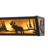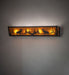 A Moose walks through the woods on this nature inspired vanity light, illuminated through Amber mica panels. The fixture has a Black finish and is handcrafted in the USA by Meyda artisans.