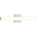 Beam LED Bath and vanity features a squared, tubular opal glass diffuser paired with a simple, modern metal canopy. An integrated LED source provides a variety of energy and cost savings benefits. Suitable for residential and commercial applications, This fixture can be installed horizontally or vertically. 22" Linear LED Bath. Brushed Nickel finish.