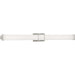 Phase 2.2 features a thin, acrylic shade framed by architectural accents in Brushed Nickel complete the design. This specially designed 48in. linear bath fixture delivers ambient light to surfaces free of shadows. Ideal for residential, commercial and multi-family applications. An integrated LED source provides energy and cost savings benefits. Can be installed vertically or horizontally.