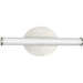 The Phase 3 Collection LED Small Linear Vanity Light has a sleek, minimalistic design that complements any decor. The thin, wall-mounted tubular design is attached to an oval backplate finished in soft brushed nickel and casts soft light through an acrylic diffuser. It features color selectable technology, with a choice of 3000K, 4000K or 5000K CCT to deliver an even layer of energy-efficient light to the bath. The vanity light's versatile design is ideal for any bathroom in contemporary or modern commercial or residential settings. Progress Lighting products are designed for exceptional quality, reliability, and functionality. .