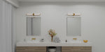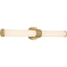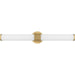 Upgrade your bathroom with the modern style of Kaye. An integrated LED light source shines brightly through the linear etched glass shade, complemented by sleek metal bands. Choose from a variety of sizes, available in your choice of matte black or aged brass. Part of the popular Platinum by Quoizel collection, Kaye bath lights are a perfect complement to modern or contemporary vanity spaces.