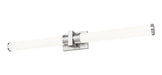 Introduce stylish, energy efficient illumination with this modern LED vanity bath light. Its generous size pairs with cylindrical opal glass shades and a brushed nickel finish to create a chic look and feel in your bath. The fixture is complete with a decorative cuff and end caps on the glass, adding stylish dimensionality and flair to its refined silhouette.