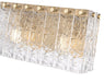 Modern gold finishing instills warm sophistication in this modern two-light vanity bath light. Its linear frame is crafted in durable steel, while vertical panels of clear textured glass evoke melting ice to bring incredible dimension and detail to your space. A perfect upgrade for a contemporary vanity in your primary or guest suite.