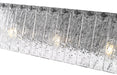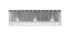 Matte black creates bold contrast and depth for this modern three-light vanity bath light. Its durable steel frame is subtle and understated, enhanced with the icy texturing of clear glass panels. This striking vanity fixture casts diffused illumination, perfect for both ambiance and daily beauty and grooming tasks.