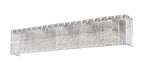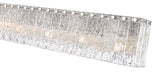 A sleek linear silhouette is enhanced with icy textured glass in this modern five-light vanity bath light. Its minimalist frame is built from durable steel and showcases a soft brushed nickel finish, adding gleaming flair in your primary or guest en suite. Vertical glass panels enhance its sense of structure and depth, creating bold dimensionality in your sophisticated home.