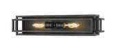 Create a sophisticated industrialized feel to bathroom retreats and communal powder rooms with this linear two-light vanity fixture. Set within a matte black cage made of slim steel frames, dual exposed bulbs create a soft illumination across vanity countertops, creating a modern architectural look and feel. A perfect opportunity to offer the romantic flicker of an Edison style bulb, creating a chic contemporary retreat.