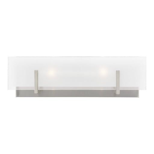 The Dex two light vanity fixture in brushed nickel silver is a contemporary design with three finishes and white acrylic diffuser creating a crisp ...