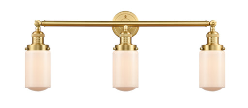 Dover - 3 Light - 31 inch - Satin Gold - Matte White Shade - Bath Vanity LightDetails:Product Type: Cylindrical / LinearFinish: Satin GoldShade: Ma...