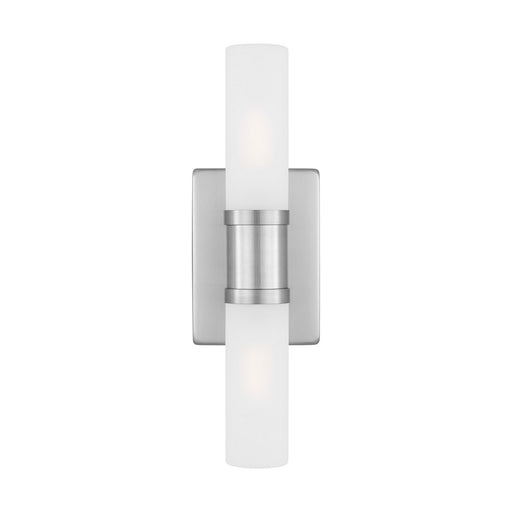 The Dex two light vanity fixture in brushed nickel silver is a contemporary design with three finishes and white acrylic diffuser creating a crisp ...