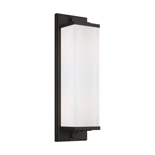 An extruded rectangular diffuser surrounds the LED source of the geometric vanity fixture. Capped by two thick offset squares the design is charact...