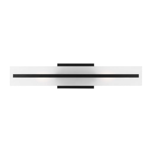 The Dex two light vanity fixture in Midnight Black is a contemporary design with three finishes and white acrylic diffuser creating a crisp look an...