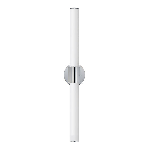 LED wall sconce with cylinder shaped white opal glass. Metal details in brushed nickel or chrome finish and is equipped with our powerful 120V AC L...