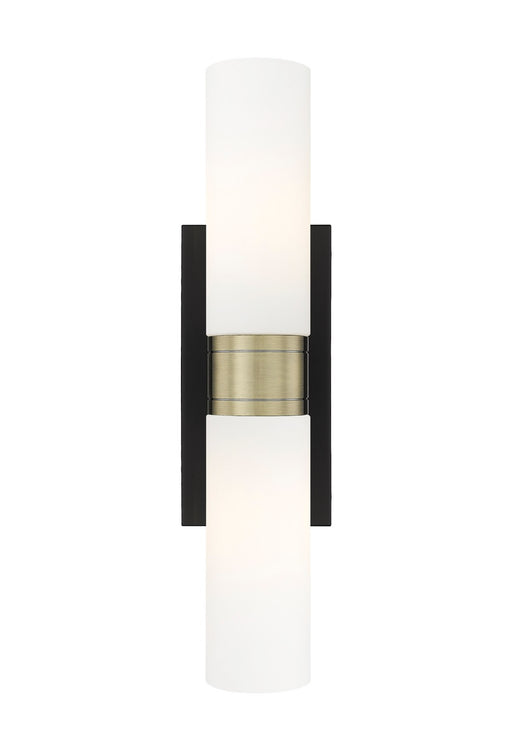 View full detailsLivex Lighting 10102-14 Two Light Vanity, Textured Black w/ Antique Brass