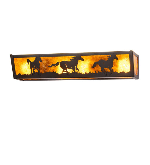 Running Horses are featured galloping along the prairie while the sun rises in the background in this dramatic lighting design. Beautiful ambient l...