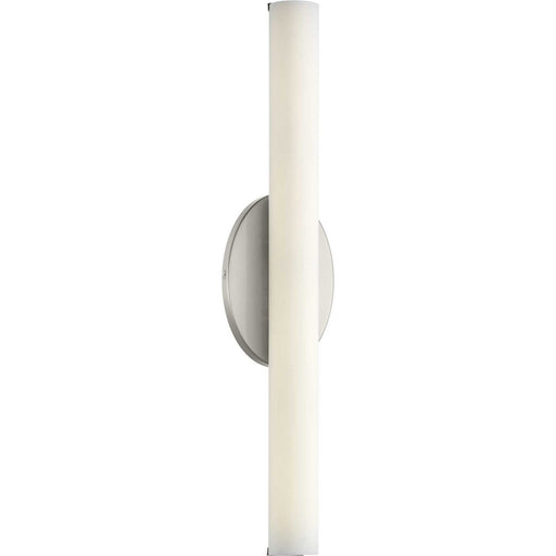 22" Parallel LED bath and vanity fixtures feature a tubular opal glass diffuser paired with a simple, modern oval metal canopy. An integrated LED s...