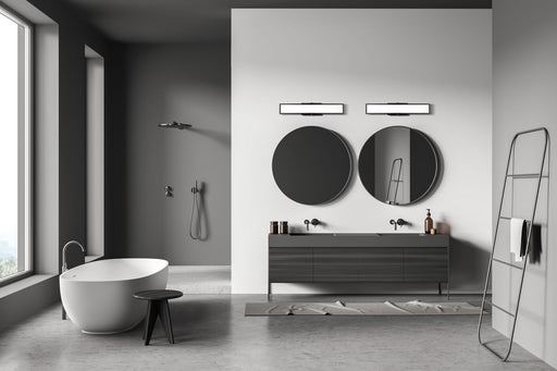 The Stella LVL256A04BK is a contemporary LED vanity light in black. Featuring a 20W integrated LED, it produces 1200 lumens at a 3000K color temper...