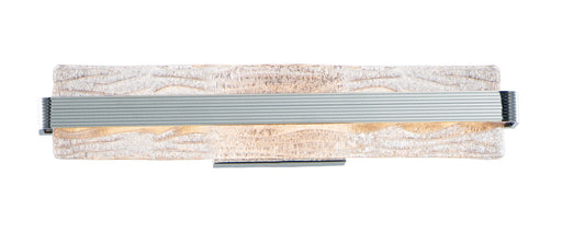 A rippled horizontal bar in Polished Chrome illuminates hand-crafted artisanal Piastra-style glass. The glass's intricate texture creates an intere...