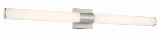 Eroles 32" Brushed Nickel LED Bath Vanity with Faux Alabaster ShadeDetails:Product Type: Cylindrical / LinearFinish: Brushed NickelShade: WhiteMeas...