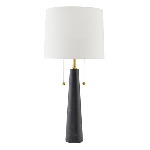 This double-socket black marble and brass table lamp features a pair of decorative antique brass pull chains and a matching finial. The Sidney is t...