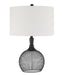 This table lamp combines an airy black metal mesh base with included white drum shade. Overall 24" H x 15.75" W. Bulb: 1 x 60W Max, Medium Base(Not Included)