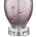 The Optimist Purple Table Lamp is made of muted lavender mouth-blown glass with speckled artisanal patterns running along its surface, the stippling a mark of true artistry that illustrates the handmade aspect of this work of art. Sitting atop an optic crystal base, the pale purple body is topped with an off-white linen shade that brings added elemental style to the glass lamp. The hardware and finial in an antique nickel finish are also warm elements.