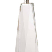 The Angelica Table Lamp is crafted of solid hand-polished crystal, fitted with polished nickel hardware, and topped with a natural linen tapered shade. This clear and sculptural lamp lends itself to a variety of settings, making it a versatile option for the living room, bedroom, or sitting room.